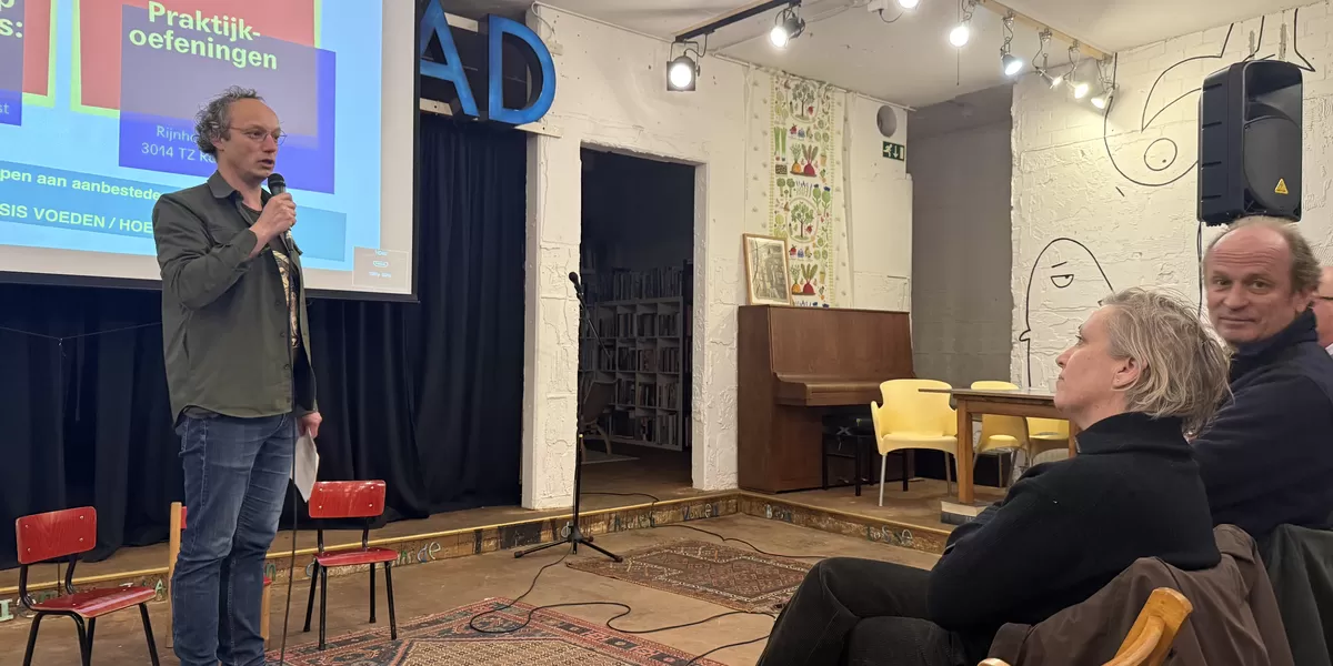 Voor mij was het een fantastische avond. Omdat ik hoor hoe er gedacht en gepraat wordt met de vrolijke constatering dat er werkelijk ‘gezocht’ wordt. Dat biedt kansen en mogelijkheden voor verandering. Zodra we een concrete weg vinden die ons doet ontsnappen aan aanbestedingen en die ons bevrijdt uit het rigide regelsysteem waarin we leven en dat nog slechts halfslachtig wordt gehandhaafd. We geloven er niet meer in. Parkeerboetes zijn makkelijker en massaal te innen dan bijvoorbeeld het weggooien van afval. Het voelt als het installeren van een nieuwe keuken zonder de afwas te doen.