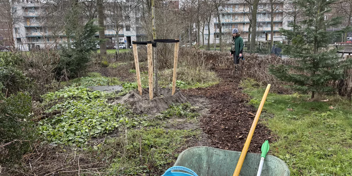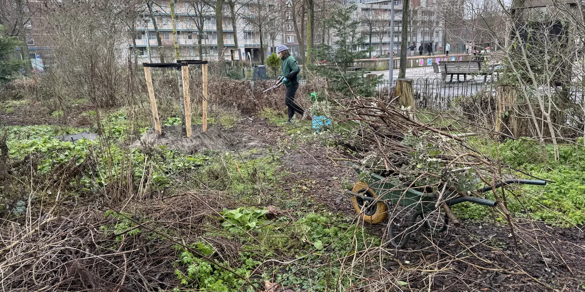 Bij het stadstuinieren is er het hele jaar door werk. In deze periode is het schoonmaken, het zwerfvuil is nu goed te zien tussen de struiken en kan eenvoudig worden verwijderd. Tegelijkertijd dient het lentebeeld worden voorbereid; dit betekent fatsoeneren en knippen en scheren. Lui en vrolijk tuinieren kan op vele manieren maar kent een aantal duidelijke principes. Lui staat voor de natuur het werk laten doen en dit betekent dat de natuur dit ook moet kunnen. Belangrijk is de bodem zoveel mogelijk met rust laten, het dode materiaal laten liggen en verteren, minimaal 50% inheemse planten als kraamkamer voor de ongewervelden. Vrolijk staat voor het gegeven dat je er vrolijk van wordt. Een fraai, romantische en verzorgde uitstraling wordt gewaardeerd en mensen reageren hier positief op. Mooi maken is dus het adagium. Persoonlijk wordt ik hier ook vrolijk van en meer nog als er volop insecten zoemen en vogels zingen in de perken. Dit alles combineren is het luie en vrolijke tuinieren.